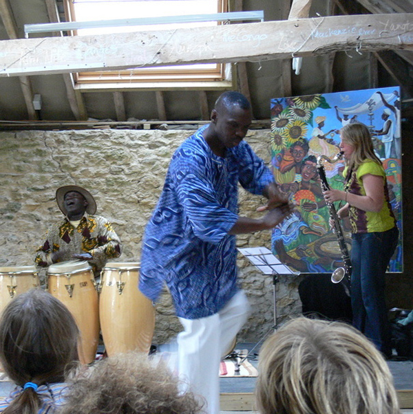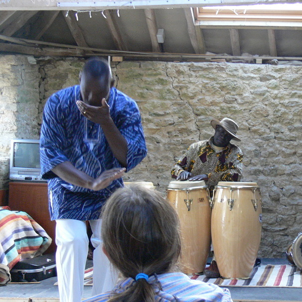 Infected by my enthusiasm, they gradually listened with greater relaxation to the music but even at the River Sessions on the 29th August, we all were observers rather than participants in the dancing. Dancing did make a major entry that day, however, in the shape of Olu Taiwo, a Cockney with Nigerian roots, who demonstrated and taught ‘dances of Brazil, Africa and Wessex’.